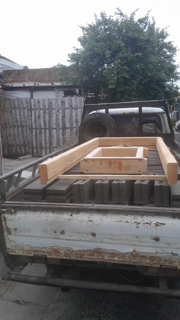 Selain itu, kebutuhan material seperti kusen, pintu, dan jendela telah dibeli dan sudah tersedia di lokasi. Pintu utama maupun pintu kamar telah siap untuk dipasang setelah proses finishing dinding selesai, sehingga pekerjaan dapat berjalan lebih efektif dan terarah.