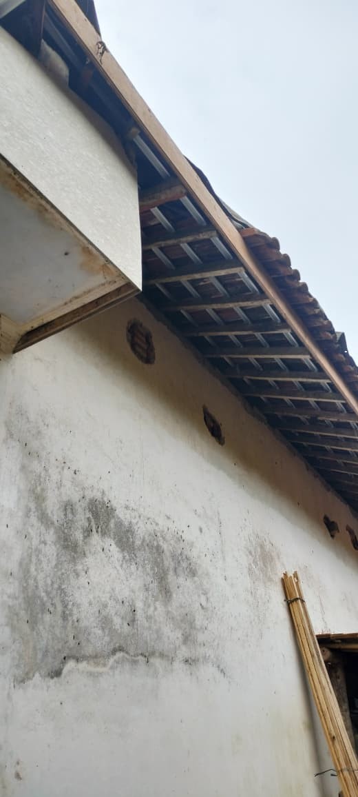 Di langit-langit dan dinding, noda hitam bekas rembesan air tampak jelas—jejak luka yang tak pernah benar-benar disembuhkan. Dinding terlihat lembap, kusam, dan catnya mengelupas, menciptakan suasana yang jauh dari rasa tenang dan nyaman yang seharusnya hadir di rumah ibadah.