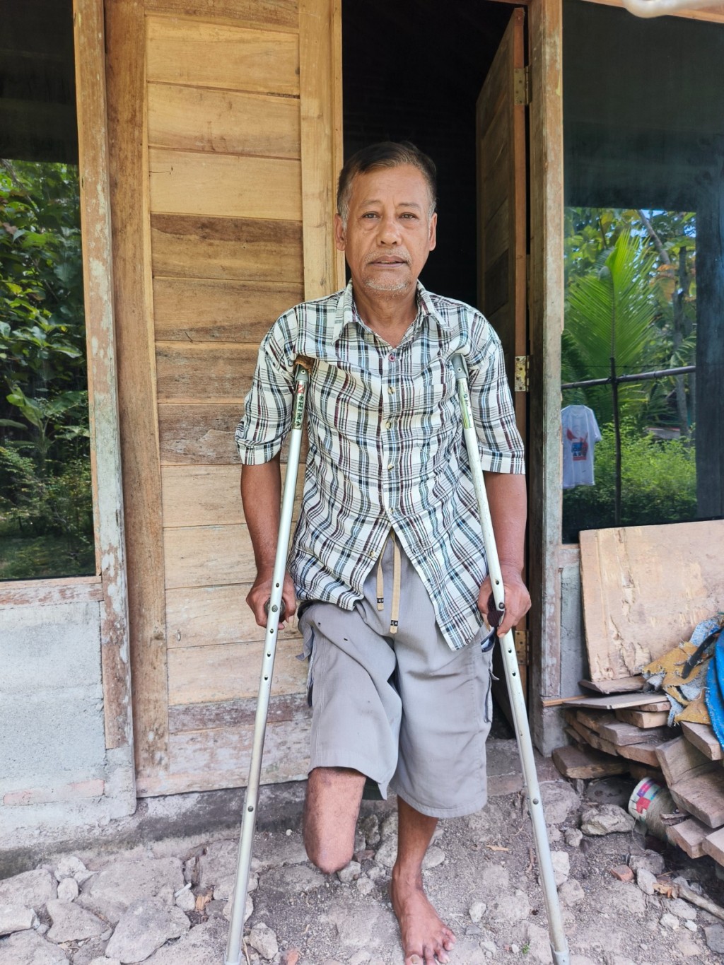 Pada tahun 2012, Pak Tukijo sempat menerima bantuan kaki palsu. Namun setelah bertahun-tahun digunakan, kaki palsu tersebut kini rusak parah dan tidak lagi bisa dipakai. Tanpa alat bantu, aktivitasnya sangat terbatas: berjalan, bekerja, hingga memenuhi kebutuhan sehari-hari menjadi perjuangan yang berat.